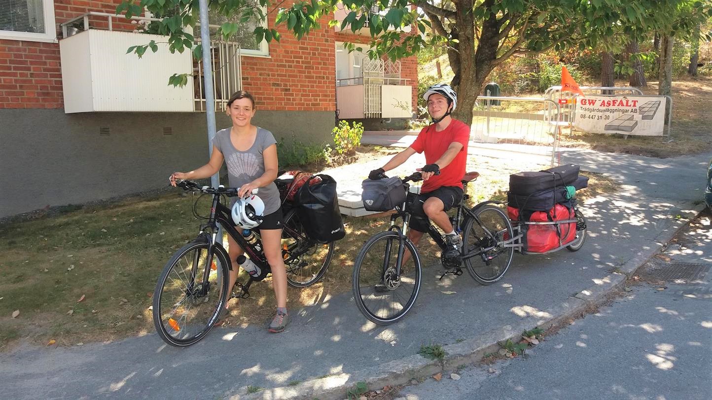 Un matin, pour découvrir la capitale suédoise, nous nous sommes rendus au centre ville en tandem, sans bagage. Nous avions laissé les sacoches et la remorque à l'appartement. Nous avons accroché le tandem à un poteau... Peut-être que l'emplacement n'était pas génial, et qu'à force de laisser notre tandem nous avions trop pris confiance... qui sait ? Toujours est-il que quand nous sommes revenus de nos quelques heures de balade, le tandem avait disparu. Il a été volé. Comme vous pouvez l'imaginer, ce fut un choc pour nous. Mais nous nous sommes vite repris et avons décidé de racheter des vélos pour continuer le voyage. Nous avions de l'argent de côté pour ce genre de situation d'urgence, et par chance nous nous trouvions dans la capitale d'un pays où le vélo est particulièrement populaire. Deux jours après le vol, nous avions déjà retrouvé deux vélos en bon état. Oui, deux vélos et pas un nouveau tandem, car trouver un bon tandem à un prix raisonnable nous aurait certainement pris des semaines. Ensuite, il nous a fallu attendre un dizaine de jours pour recevoir une pièce indispensable qui permet d'attacher la remorque au vélo, commandée par internet, et pouvoir nous remettre en route.