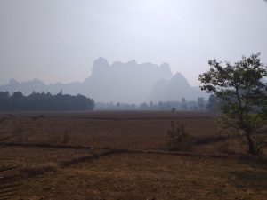 Après une courte nuit de bus, nous arrivons a la frontiere thailandaise avant l’aube. Les yeux pas encore vraiment ouverts, nous quittons le pays dans lequel nous venons de passer 1 an et 3 jours, et traversons à pied le Pont de l’Amitié pour arriver en territoire birman. Au cours des 10 minutes de marche, Cindy découvre que la semelle de sa chaussure de randonnée est complètement décollée… Ca commence bien ! Heureusement, nous n’avons pas de rando de prévue de sitôt, nous aurons le temps de trouver un cordonnier d’ici là. Elle chausse ses sandales, et nous partons à la recherche d’un moyen de transport pour Hpa-An, petite ville de l’état Karen et première étape de notre voyage.